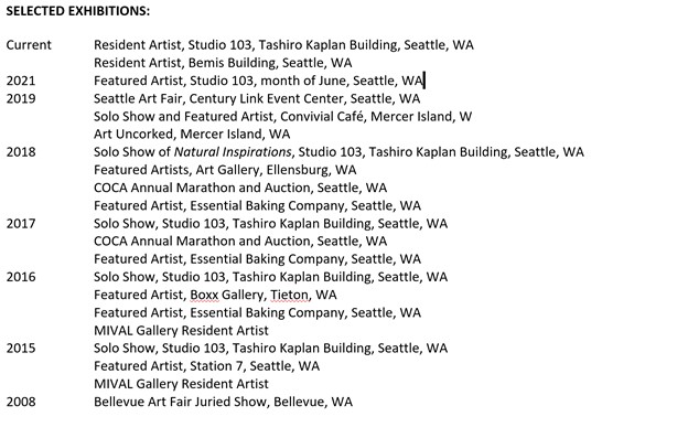 Leslie loves to work in encaustic, cold wax, and assemblage mediums. She recently moved to Atlanta from Seattle, where she had established a successful career in art and home staging while raising her family. Leslie has spent much of her life traveling, living in Italy while in high school and graduating from the University of Maryland, Munich Germany campus. She loves to train with her crew team, visit local markets, and spend time with her family.